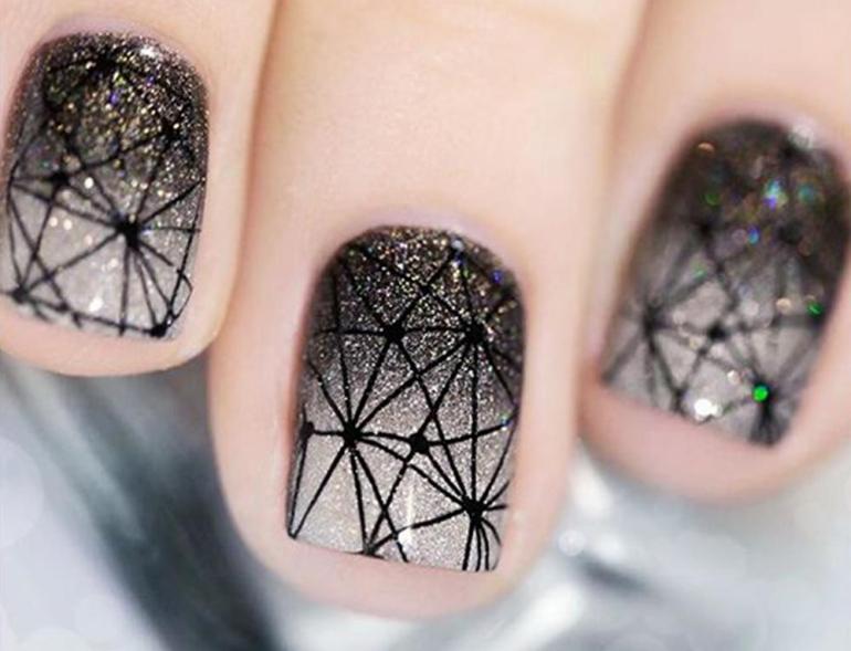 Дизайн ногтей паутина выглядит очень красиво и интересно на ногтях любой длины. Это могут быть хаотичные переплеты или четкие геометрические линии и узоры.