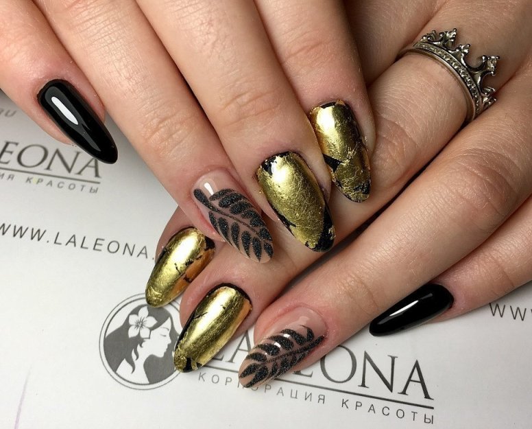 Золото в черном осеннем маникюре