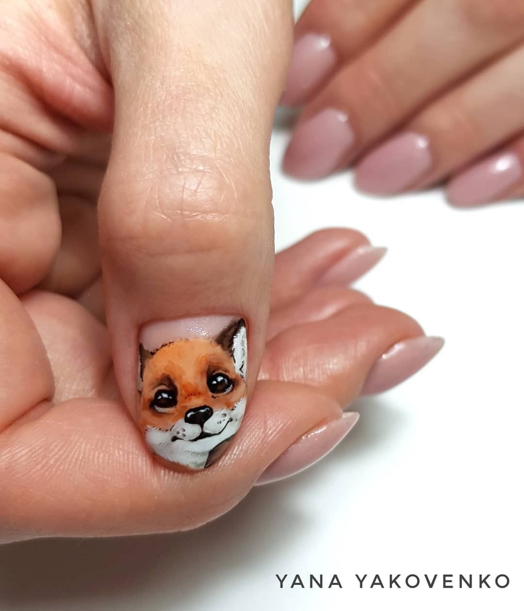 Такое предложение по праву можно назвать новинкой сезона. Забавная лисичка на ногтях – это не только красиво, но и очень оригинально. Такой маникюр не останется незамеченным, и скучным его уж точно никто не назовет
