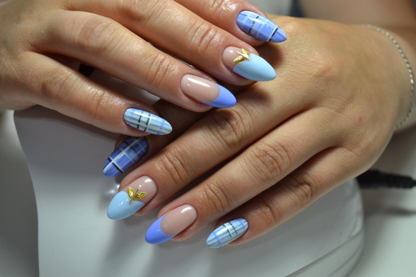 Хит осеннего сезона в маникюрных оттенках — приглушенный голубой, нежный оттенок чистого горного озера. Глубокий оттенок синего холодного лака в сочетании с металлом будут прекрасно смотреться на осеннем маникюре. Оттенки черных, серых и нюдовых лаков также популярны в осеннем сезоне 2023.