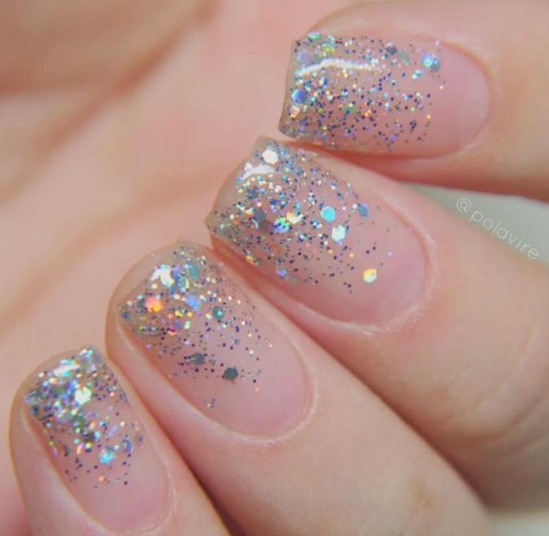 Если вам нужен красивый и праздничный маникюр, то френч с блестками вам подойдет идеально. Сверкающие частички прекрасно дополнят элегантное платье и шикарную прическу. На любом мероприятии вы будете ловить на себе взгляды окружающих.