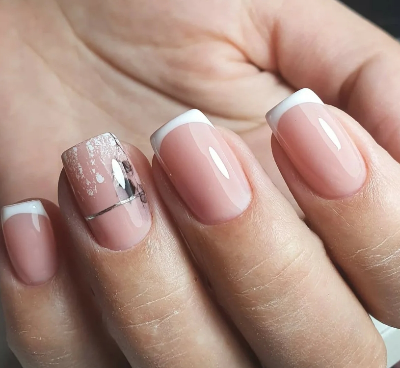 Но и тут есть новшества: нейл-мастера демонстрируют классический френч в тандеме с отдельно выделенным ноготком с помощью камифубуки, наклейками-слайдерами, фольгой, а также и стразами, что придают интересные и кокетливые нотки классическому решению френча 2024-2025.
