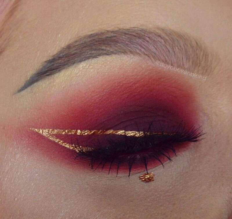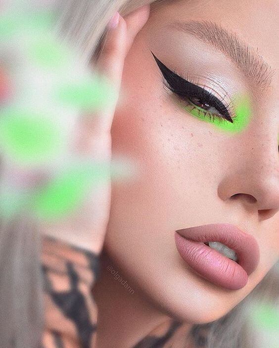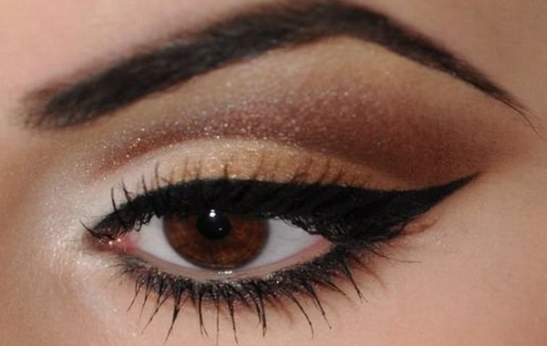 При этом тени могут быть матовыми или перламутровыми, в зависимости от повода. Мейкап можно дополнять стрелками чёрного, коричневого, серебристого и золотистого оттенка. Для дневного макияжа лучше избегать использования яркой подводки.