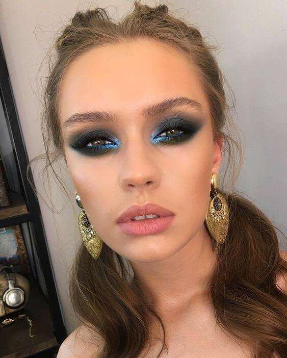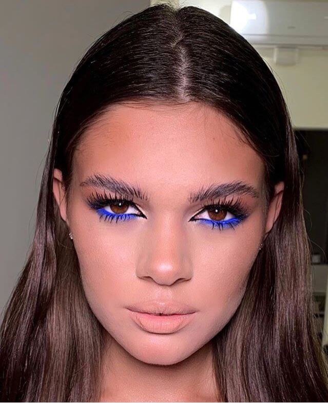 Кобальтовый, сапфировый, королевский синий цвет для матовых теней превосходно подходит для вечернего макияжа темноволосых девушек. Такой стиль выглядит сочно и выразительно, по контрасту подсвечивая цвет глаз.