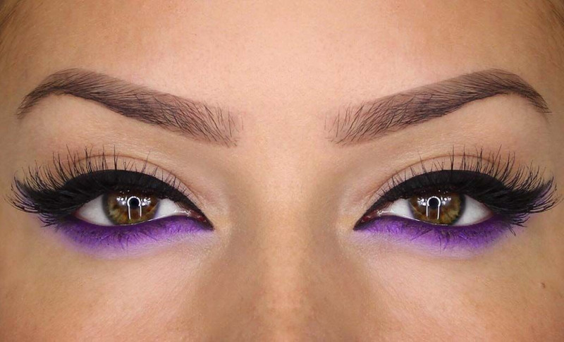 Очень стильно смотрится цветная подводка. Она остается в тренде уже не один год. Наносить ее можно не только на верхнее веко, но и на нижнее, также по всему периметру или на определенном участке глаза.