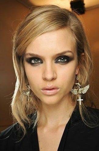 Темный серо-черный smoky eyes более гармонично дополняет внешность брюнеток. Столь насыщенный мейк-ап лучше сделать для вечернего похода в ресторан, кино или на дискотеку. Днем тени следует использовать более сдержанно, а контурный карандаш можно не применять вовсе, ограничившись расплывчатыми линиями теней.