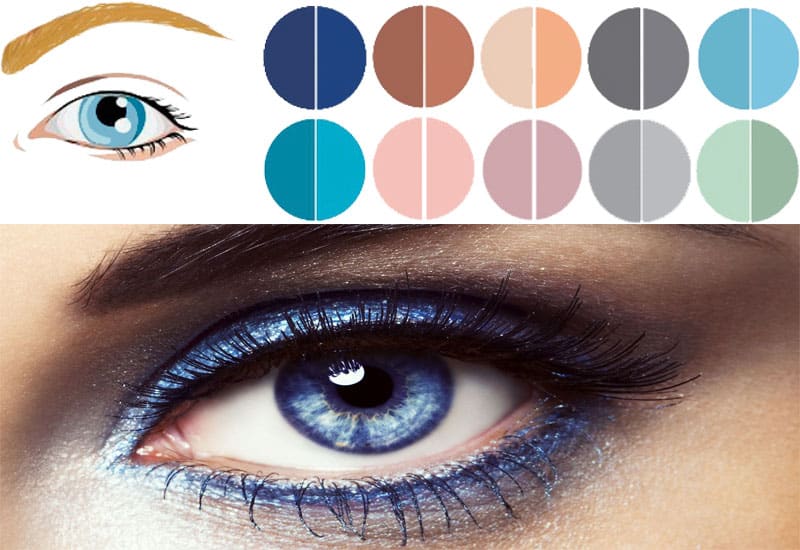 Прежде всего стоит определиться с оттенками теней, которые могут подойти к голубым глазам. Яркость и глубину голубых глаз могут грамотно подчеркнуть оливковые, коричневые, золотистые, угольно-чёрные, фиолетовые и сиреневые тона. Выбор конкретной палитры будет сильно зависеть от насыщенности цвета радужки. У таких глаз весьма впечатляющая палитра — от бледно или серо-голубого до яркого синего.