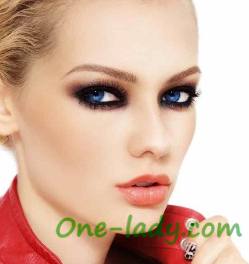 - Ярко выраженные голубые глаза. Некоторые голубоглазые модницы ошибочно подбирают синие и голубые тени для создания макияжа. Зачастую (особенно при непрофессиональном подходе), этот цвет выглядит вульгарно. Лучше всего использовать для дневного смоки коричневые, золотые, песочные, розовые тона.В вечернем макияже пронзительный взгляд помогут создать чёрные, стальные, угольные оттенки. Для праздничного образа можно использовать золотые и серебряные тени, но умеренно.