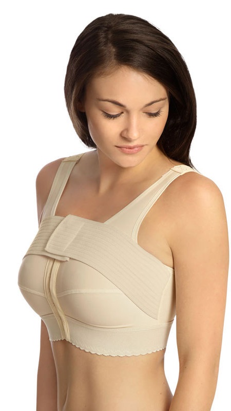 Сразу после операции женщине одевают компрессионное белье. Его нужно носить на протяжении одного месяца не снимая. Подбирается изделие до операции с учетом будущих изменений железы. К компрессионному белью особые требования: ткань плотная, эластичная и дышащая. На изделии нет ребер жесткости и швов. Оно должно плотно облегать, поддерживать, но не создавать дискомфорта.