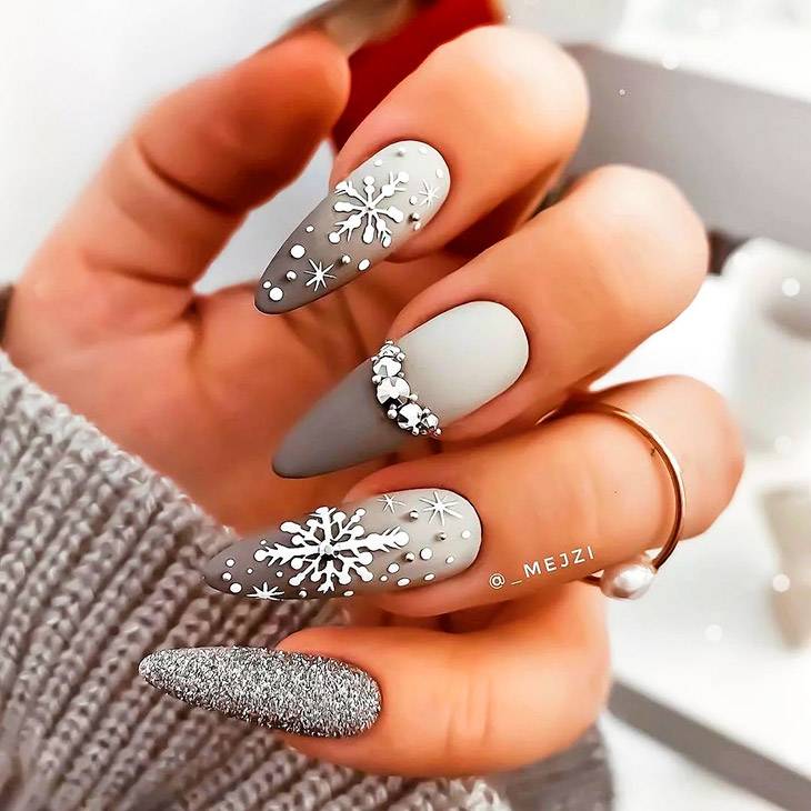 Серебро с тёмными тонами даст беспроигрышный классический вариант для праздничных вечеринок, а серебристый оттенок привнесет элегантности в сочетании с формой овала.