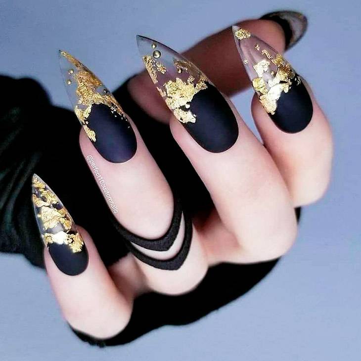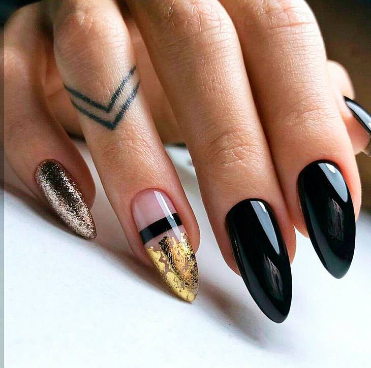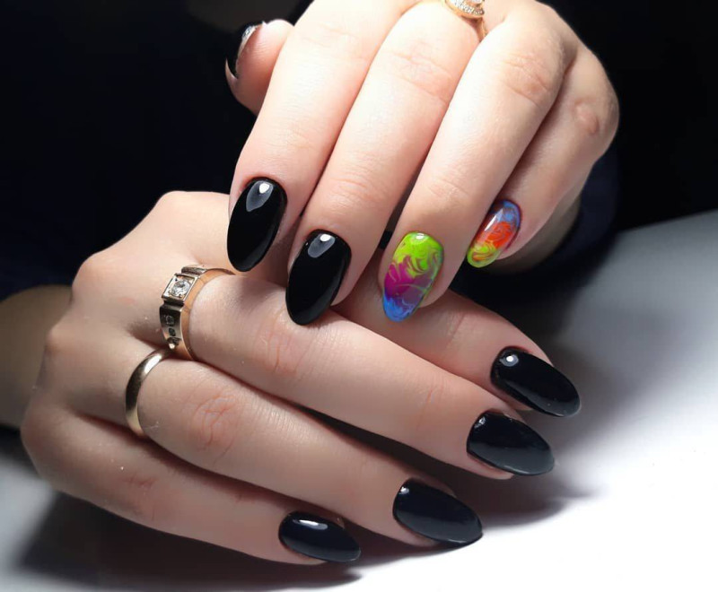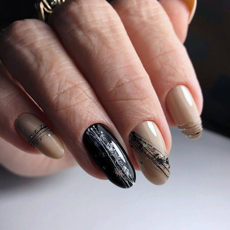 Темный дизайн подчеркнёт красоту овальной формы ногтей – идеи