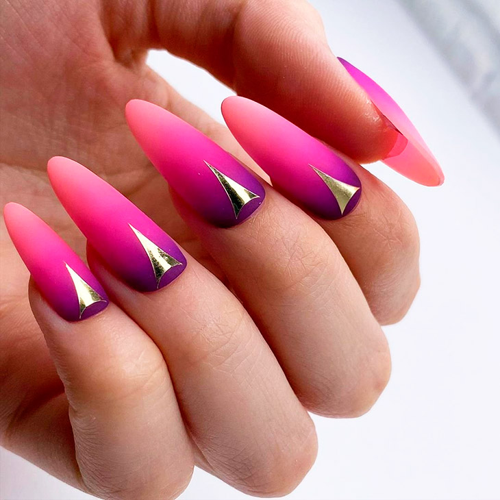 - @nailsbydiem / Instagram - Native Share - Gradient- Выберите один цвет и пробегитесь по спектру с другим тоном в пределах одного семейства оттенков на каждом кончике пальца.