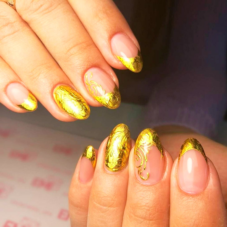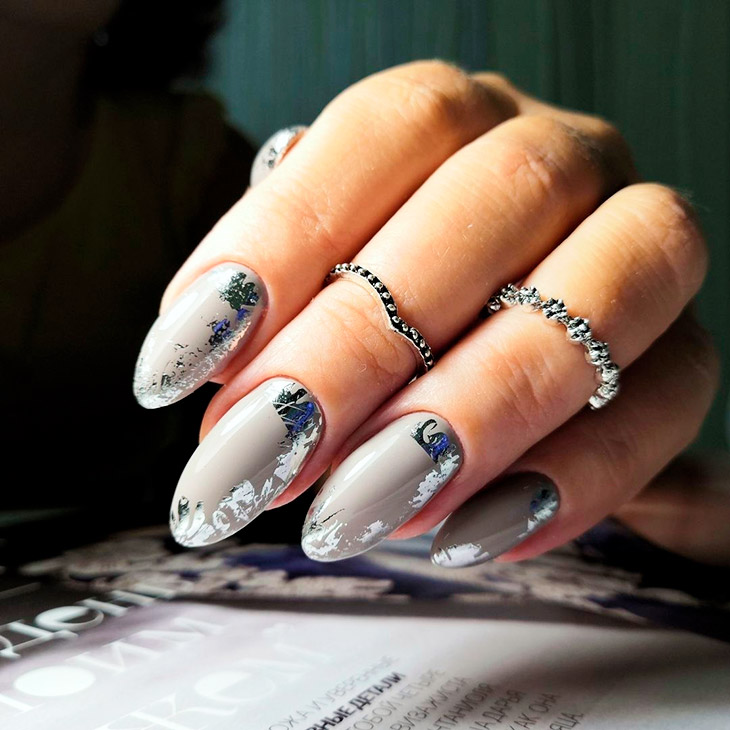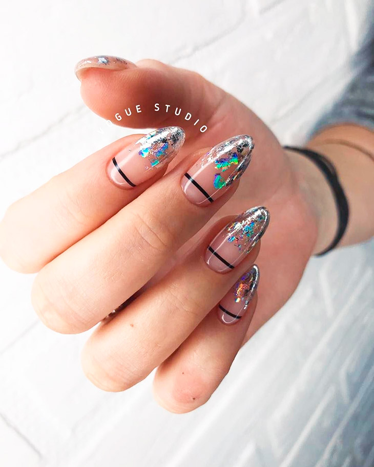 Фольга — беспроигрышный вариант, особенно в технике «брызги». К тому же, она сочетается практически со всеми цветами.