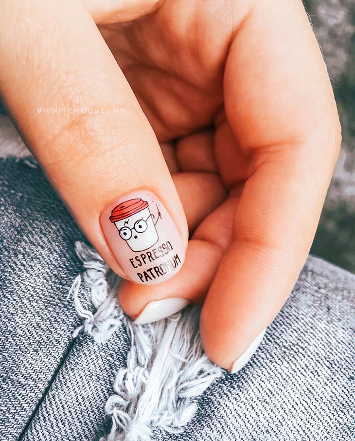 Еще один из оттенков кофейного маникюра, который также придется по нраву модницам. Маникюр кофейного цвета, выполненный в этом тоне можно сделать оригинальней, если на одном из ноготков изобразить чашечку кофе на крохотном блюдце, а на другом сделать подпись – эспрессо.