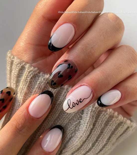 Хороший вариант — контрастный френч. Сочетается чёрно-белые, темный-оранжевый. Проигрышное сочетание — красно-зелёный, его стоит избегать.