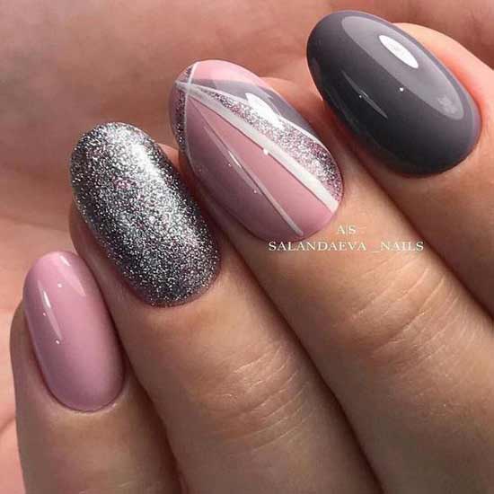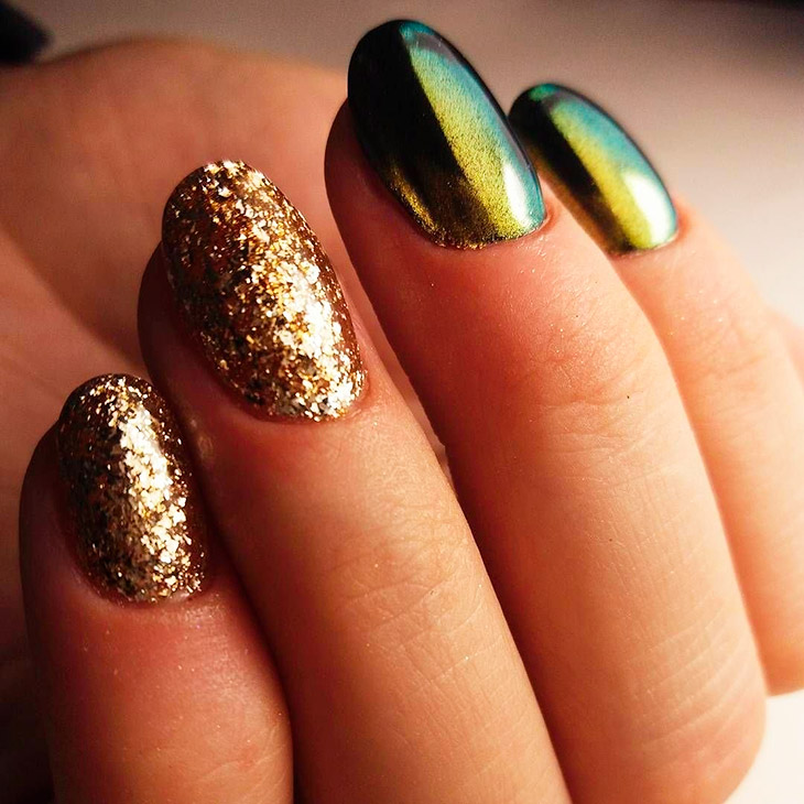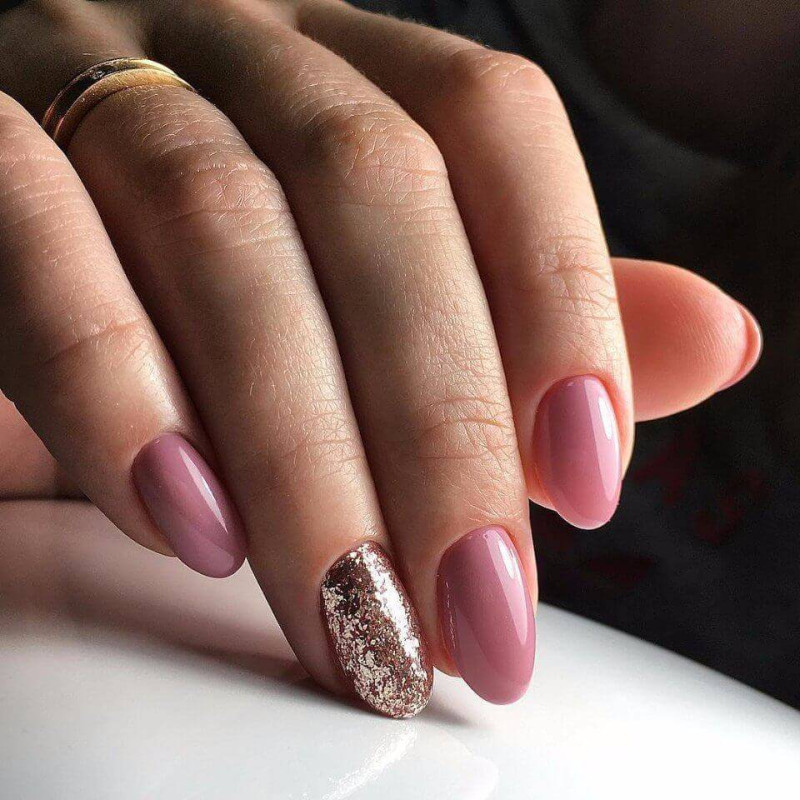 Блестящий овальный маникюр делать не рекомендуется. В лучшем случае — расставить акценты. Блестки остаются в трендах, но и тут ненужно перегибать. Хорошо дизайном подчеркнуть отдельные ногти, линии или даже рисунок.