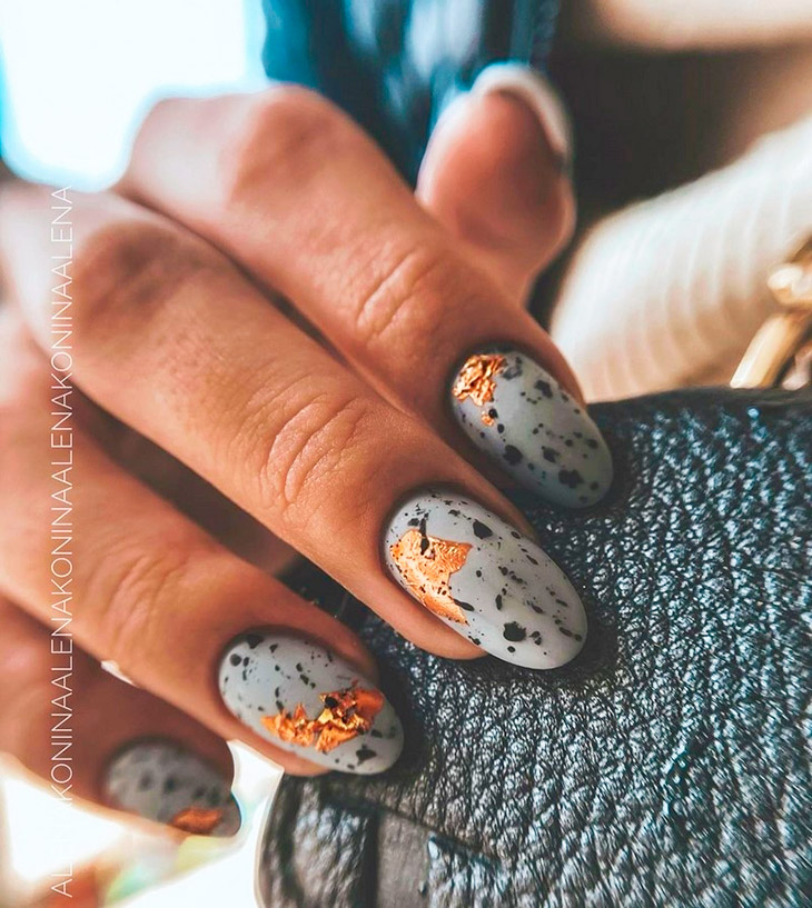Однако стоит отметить, что «мраморность» давно ушла из трендов. Сейчас в моде «точки» и «брызги»