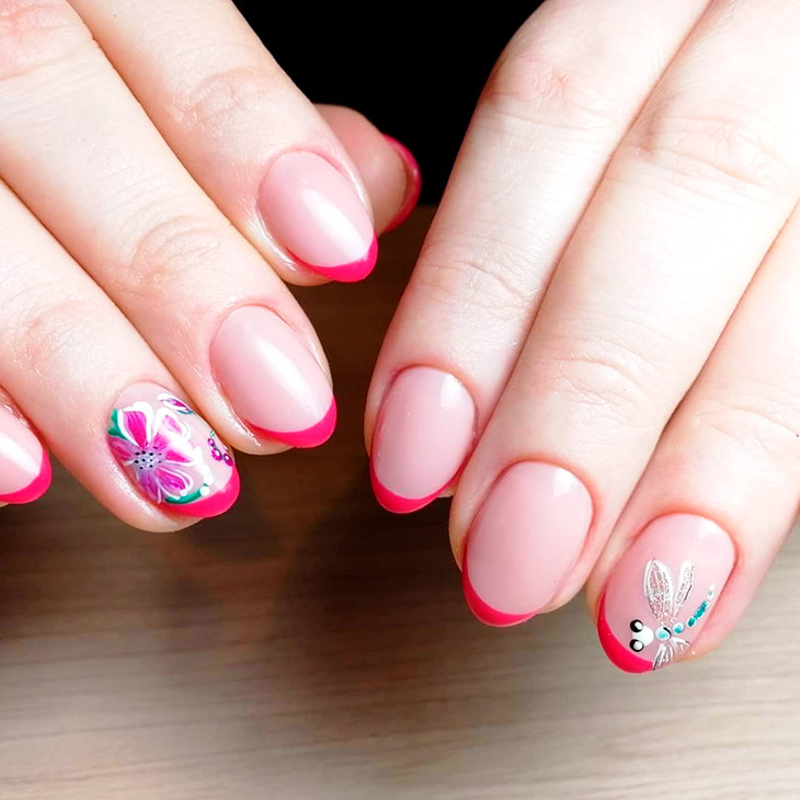 В рисунках на овальных ногтях хорошо сочтется флора и фауна, олицетворяющая природу так же, как овал. Подчеркивает естественность формы.