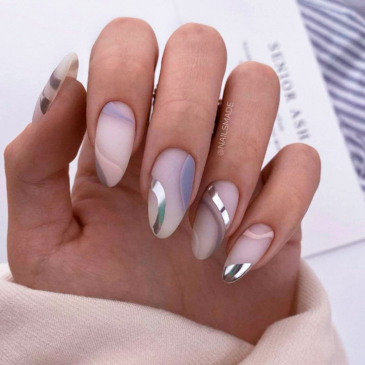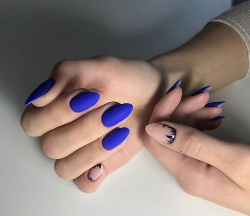 В последнее время высшие ступеньки ногтевой индустрии покоряет матовый маникюр. Данный вид маникюра очень необычный и оригинальный. При выборе матового маникюра стоит учесть тот факт, что он делается только на идеальную форму ногтей, поскольку подчёркивает все несовершенства. Овальная форма ногтей больше всего подходит для выбора этого маникюра.