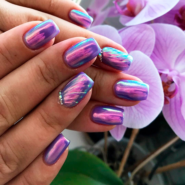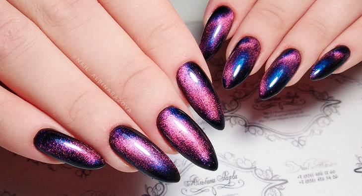 Светоотражающий, как и неоновые оттенки, уходит в прошлое. В овальном маникюре больше внимания уделяется пастельным тонам. Светоотражающий маникюр подойдет для мероприятия, и то, лучше всего им акцентировать.