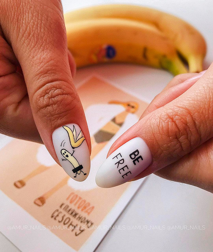 В летнем сезоне 2020 года как никогда будет актуальным фруктовый дизайн. Сливы, вишня, банан, клубника, ананас – это лишь малая часть того, что можно реализовать на ноготках. В сочетании с дополнительным декором такой дизайн выглядит невероятно красиво.