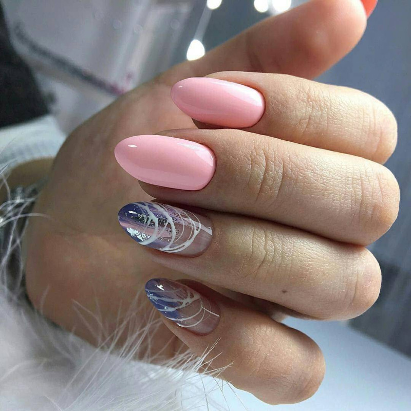 Здесь так же важно не переборщить. Узорами с завитками можно украсить один ноготь, сделав на него акцент, а остальные оставить в однотонном варианте. Трендовые узоры на овальных ногтях могут быть абсолютно любыми — это всё зависит от желания самой женщины и умения мастера