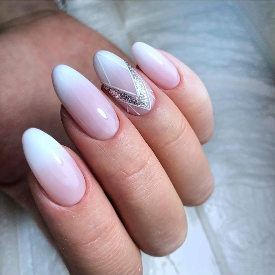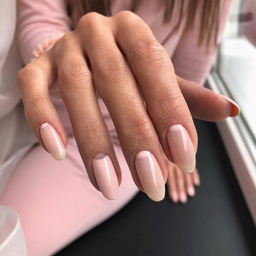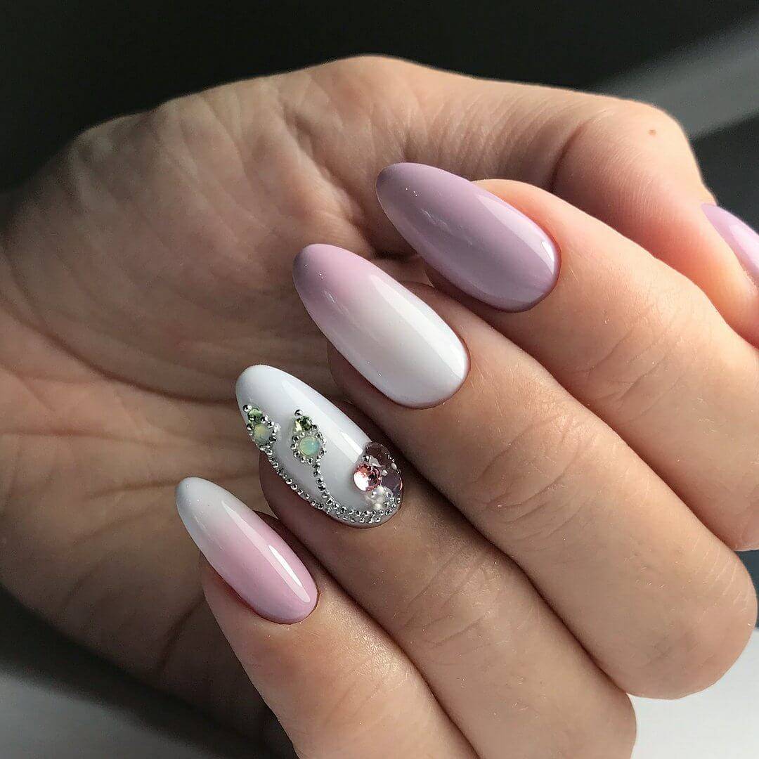 Градиент и омбре и остаются хорошим выбором для сдержанного овального маникюра с небольшой ноткой таинственности. Хорошо сочетается классические чёрно-белые, либо пастельные цвета, к примеру, от розового к голубому.