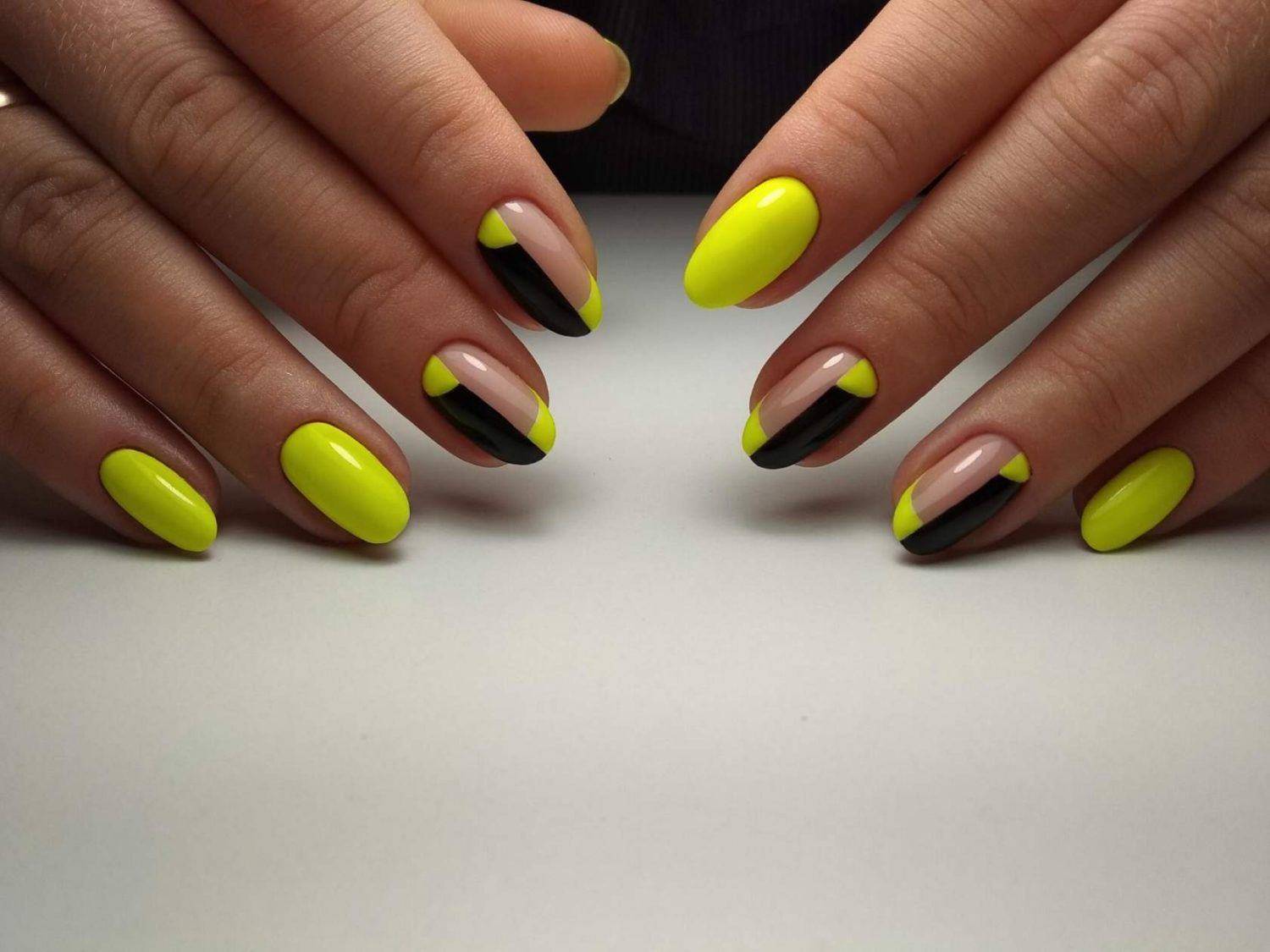 Хороший вариант — контрастный френч. Сочетается чёрно-белые, темный-оранжевый. Проигрышное сочетание — красно-зелёный, его стоит избегать.