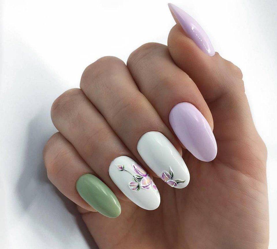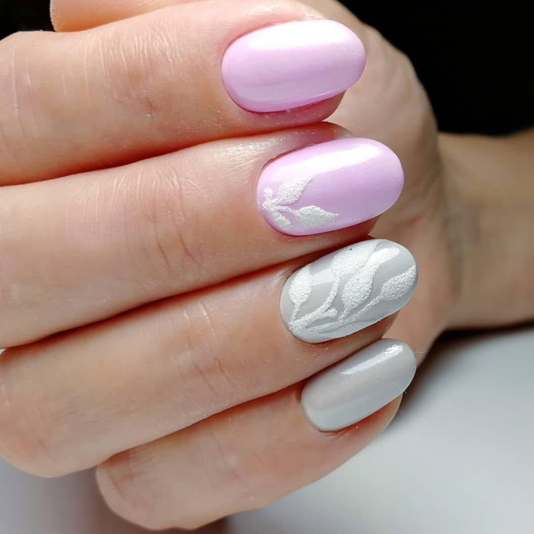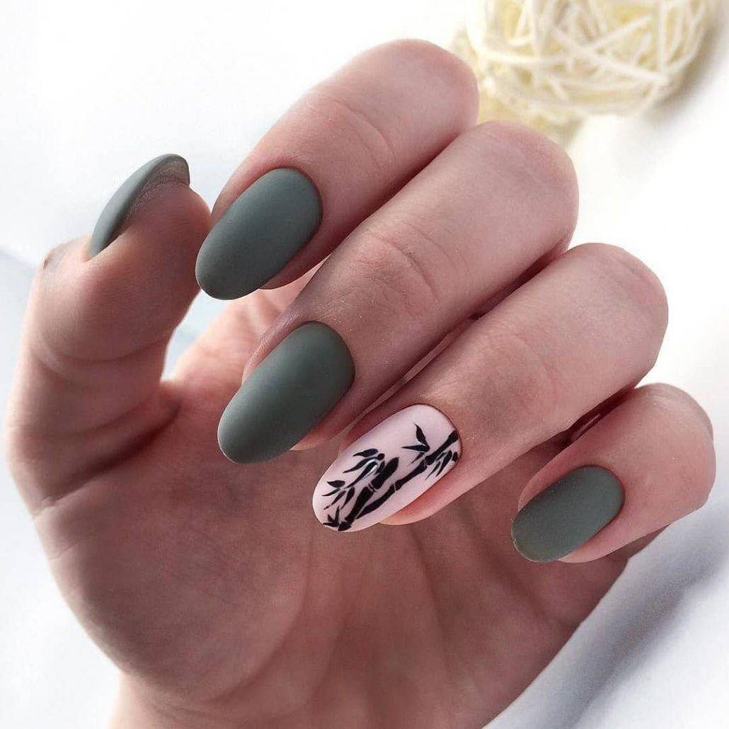 Стильный маникюр на овальных ноготках может выглядеть совершенно по-разному. Кто-то предпочитает нейтральные, лаконичные веточки в качестве единственного рисунка. Такой вариант – идеальное решение в повседневной жизни. Поскольку он будет хорошо сочетаться буквально со всем. В то же время, более яркие рисунки в виде зеленых листьев и бутонов цветов – всегда являются идеальным украшением для овальных ноготков.