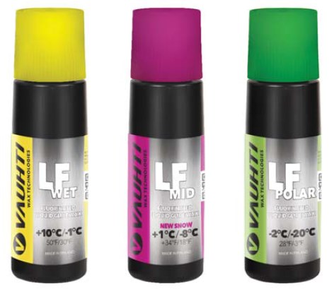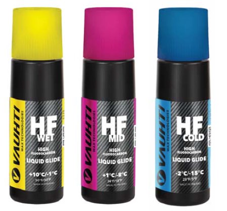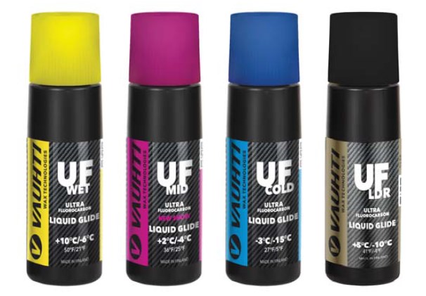 Комбинация компонентов смазок UF и фторовых порошков RC. Самое высокое содержание фтора среди жидких парафинов Vauhti. Состав обладает повышенной износостойкостью и устойчивостью к грязному снегу. Может использоваться как самостоятельная смазка и финишный слой на уже подготовленные к гонке лыжи.