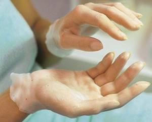 - Не меньше чем 25 минут держите маску из парафина на руках.