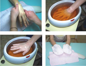 - Температура парафиновой маски должна быть комфортной, поэтому сначала попробуйте опустить только палец и только потом всю кисть.