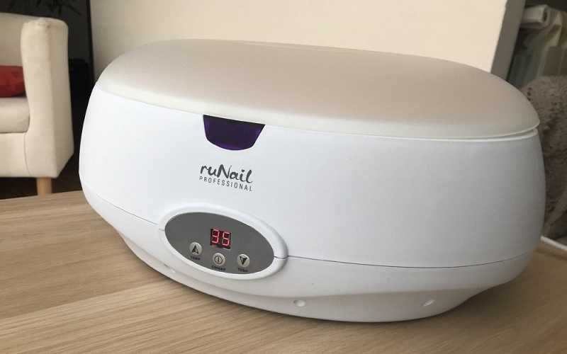 - Runail. Китайский бренд. Два режима – разогревание и поддерживание температуры. Расплавляет наполнитель в течение 45 минут. Объем чаши рассчитан на 3-3,5 кг парафина. Хотя изготовитель прописывает максимальный объем 2 литра. В комплектации есть кисточка, которой удобно наносить состав. Также имеется защитная решетка. Агрегат достаточно массивный. Его мощность 150 Вт. Подходит для обработки рук и ног. Такое оборудование приобретают для салонов и для домашних процедур. Так как стоимость его не велика – от 1800 до 2700 рублей. Размер внутренней ванны 19*26 см. (ширина и длина).