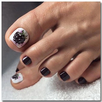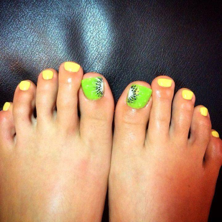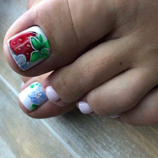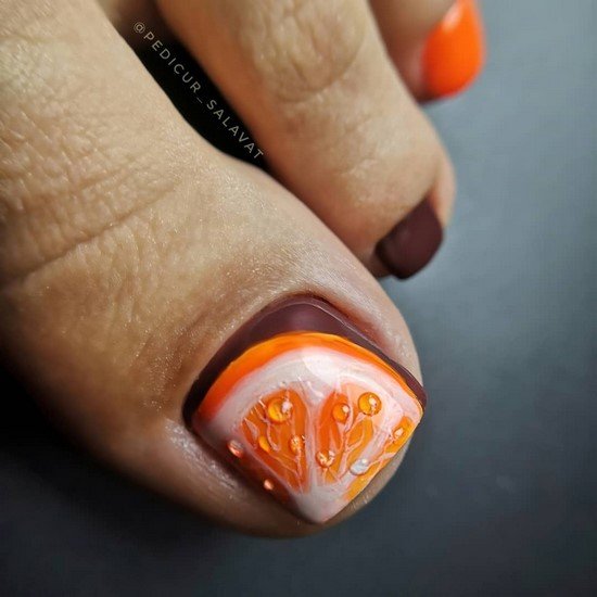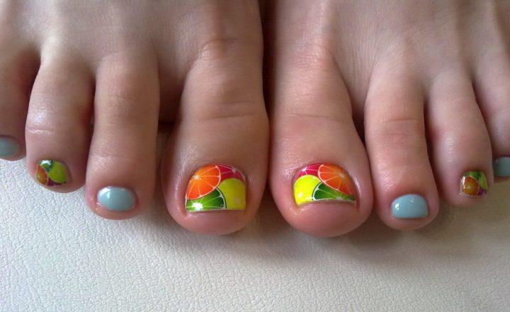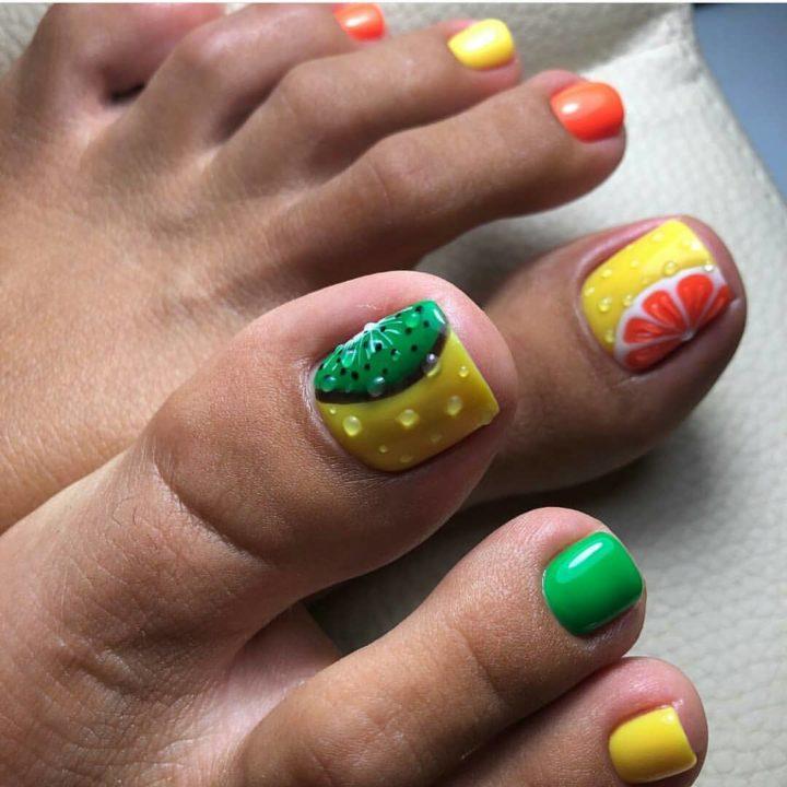 Педикюр с фруктами всегда красочный и яркий. Он привлекает много внимания и точно сможет вызывать восхищение у окружающих.