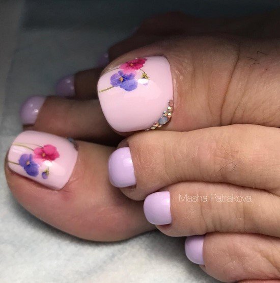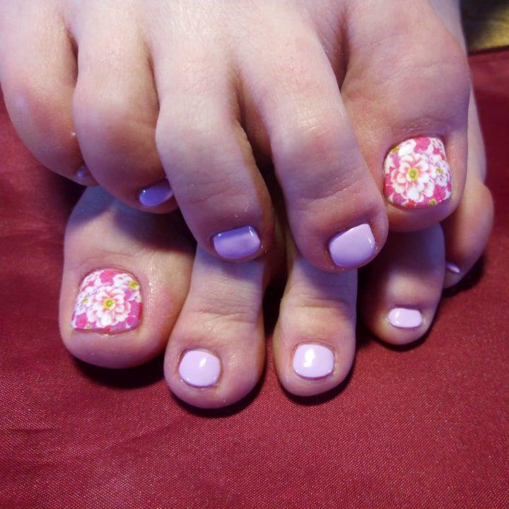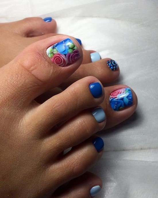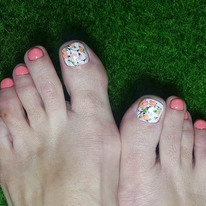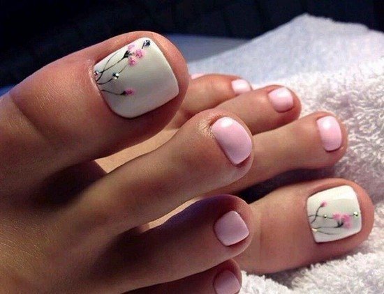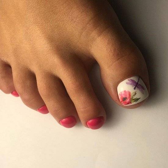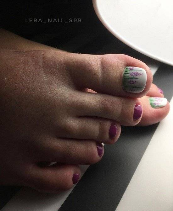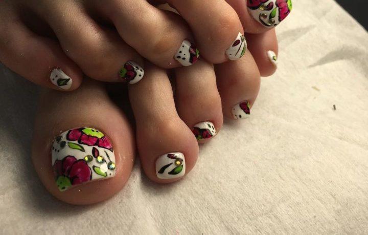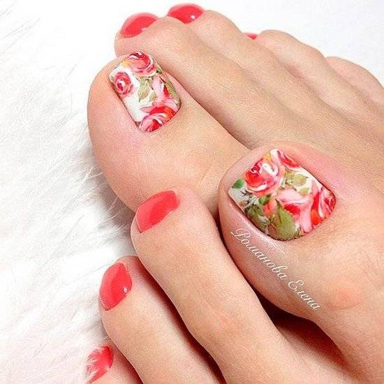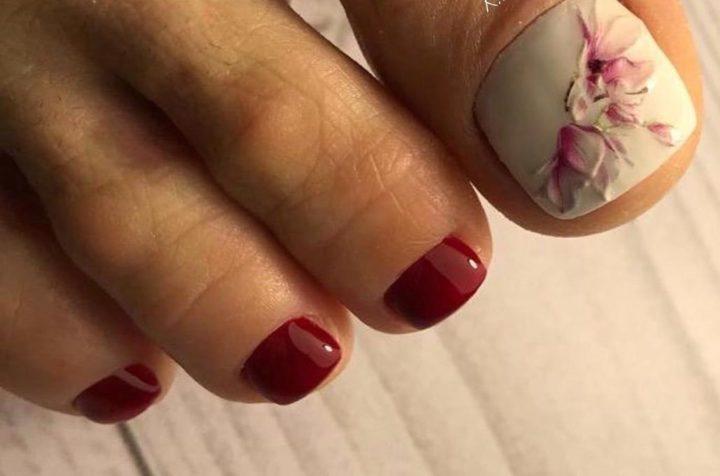 Для того чтобы привлечь к своим ножкам внимание, сделайте рисунок на большом пальце. Флористика — добавит в ваш образ романтичности и женственности