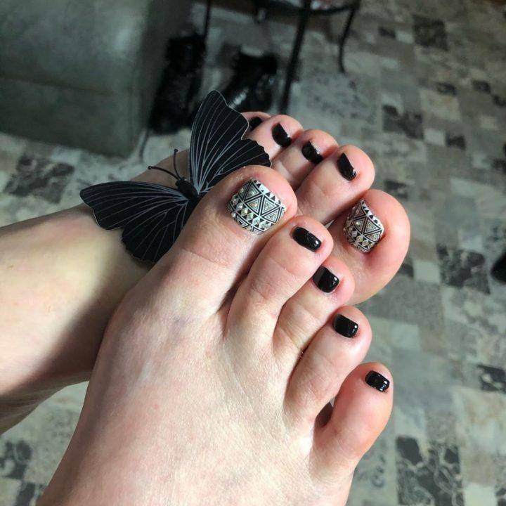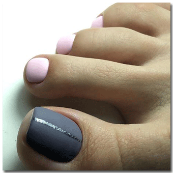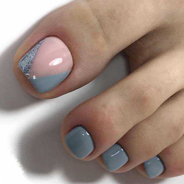 Летом 2023 года дизайнеры рекомендуют использовать для создания такого педикюра не только один из выбранных оттенков лака, но и при желании выделять акцентный ноготь с помощью различных украшений или неброских рисунков. Это может быть несколько блестящих кристаллов, симпатичная полоска блесток внизу, милый цветок, бабочка или парочка полосок – все зависит от ваших предпочтений. Главное, чтобы педикюр максимально соответствовал выбранному стилю.