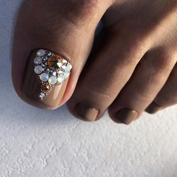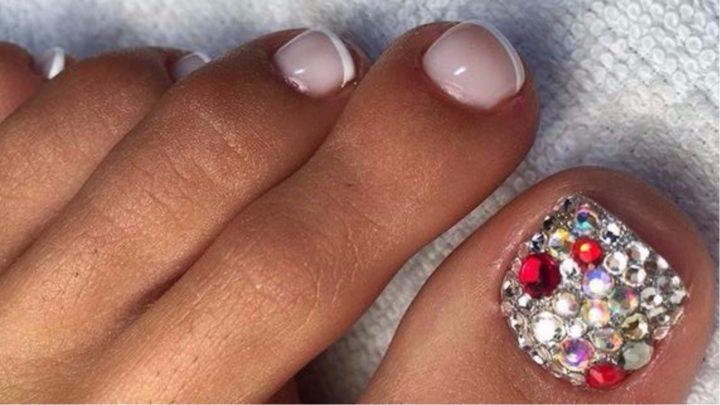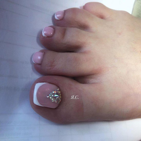 Самый классический декор в мире — это стразы. Стразами украшают многие предметы обихода, посуду, аксессуары, одежду и конечно же ноготки. Педикюр с использованием страз смотрится дорого, нарядно и вызывает невольное восхищение.
