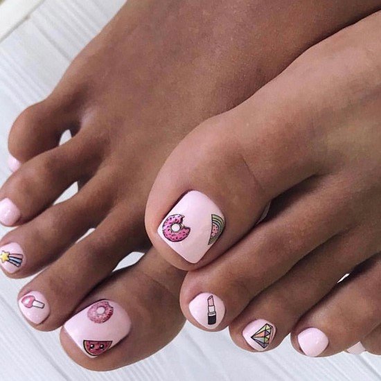 Как вы видите идей для создания красивого педикюра много, поэтому можно подбирать различные узоры и стильные рисунки, которые представлены в данном разделе. Нестандартные идеи помогут вам сделать интересный педикюр, но в тоже время немного отойти от стандартного исполнения.
