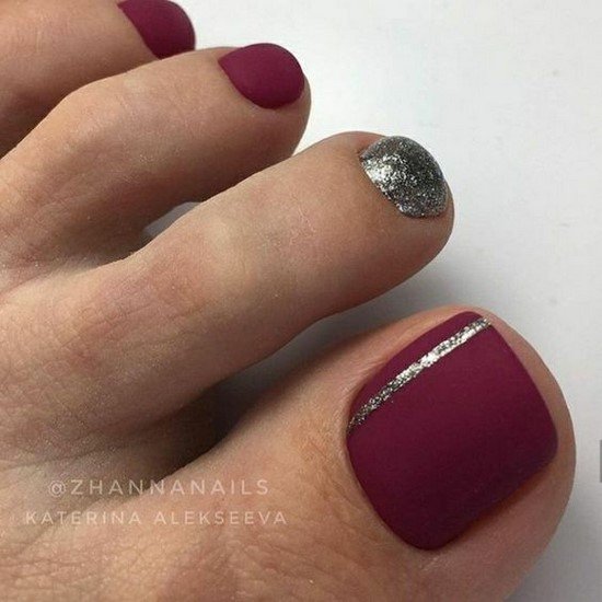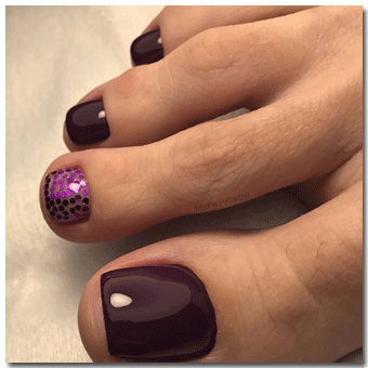 - педикюр не терпит слишком ярких неоновых оттенков – чтобы дизайн смотрелся привлекательно, выбирайте спокойные по колористике тона: черный, бордовый, синий.