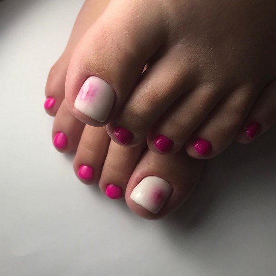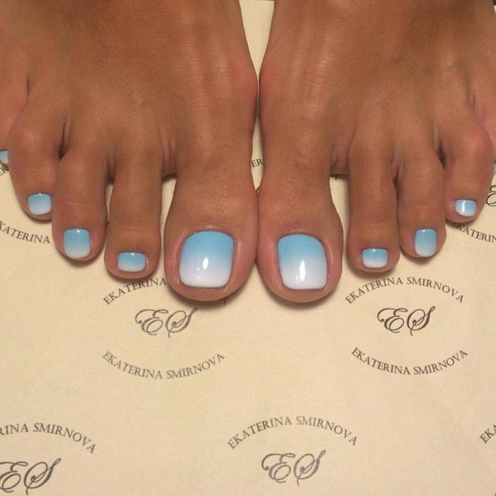 Градиент или обмре не покидает нас и в этом году. Это превосходный выбор для педикюра, чтобы выглядеть стильно. Главное помните, что теплые оттенки лаков подходят на теплое время, а более холодные на холодные. И пусть это достаточно банально, но мастера рекомендуют использовать именно такой подбор, чтобы получился удачный педикюр, который будет в тему текущего сезона.
