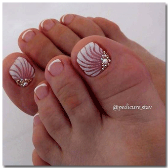- дизайн в педикюре должен быть умеренным – не стоит украшать ногти на ногах сложным объемным декором. Он попросту будет мешаться при носке как открытой, так и закрытой обуви.