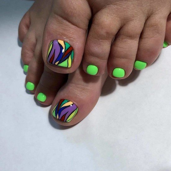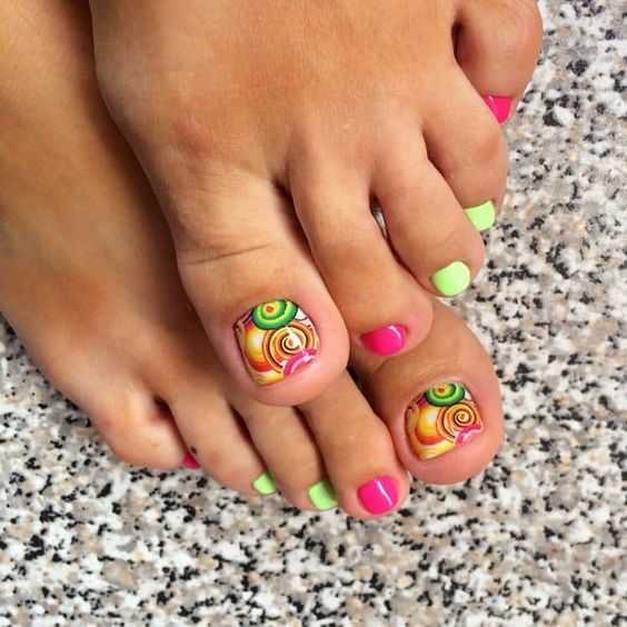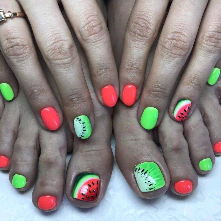 Неоновый педикюр на лето и ногти в ярких интерпретациях