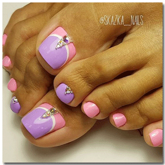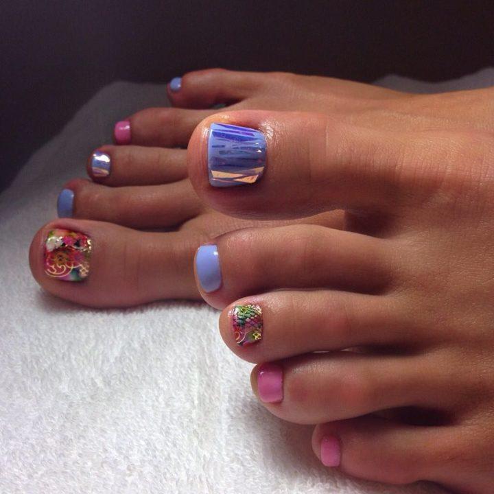 Иногда, все, что нужно для создания шедевра — это несколько контрастных оттенков. Когда придумываете разноцветную комбинацию, вы можете исходить из вариантов вашей одежды или же придерживаться модных тенденций текущего сезона. Любой декор, дополненный к данному дизайну (стразы, блестки, фольга), только лишь улучшит общий вид ног.