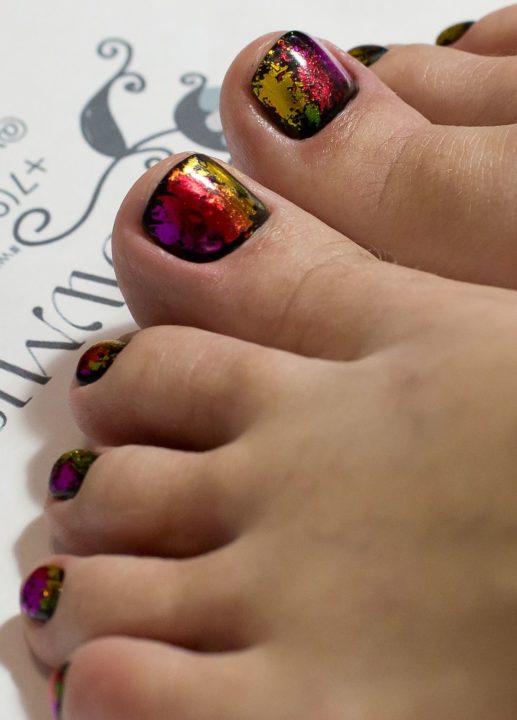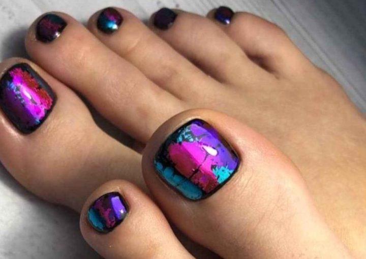 Летние новинки педикюра с дизайном «Слеза Единорога» с эффектом жидкого металла