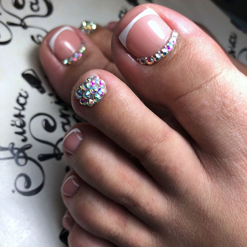 Варианты педикюра со стразами