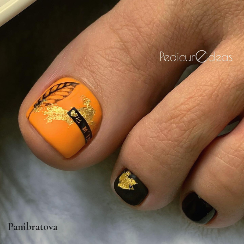 А теперь еще несколько примеров оригинальных и стильных нейл-дизайнов педикюра для осени 2023: