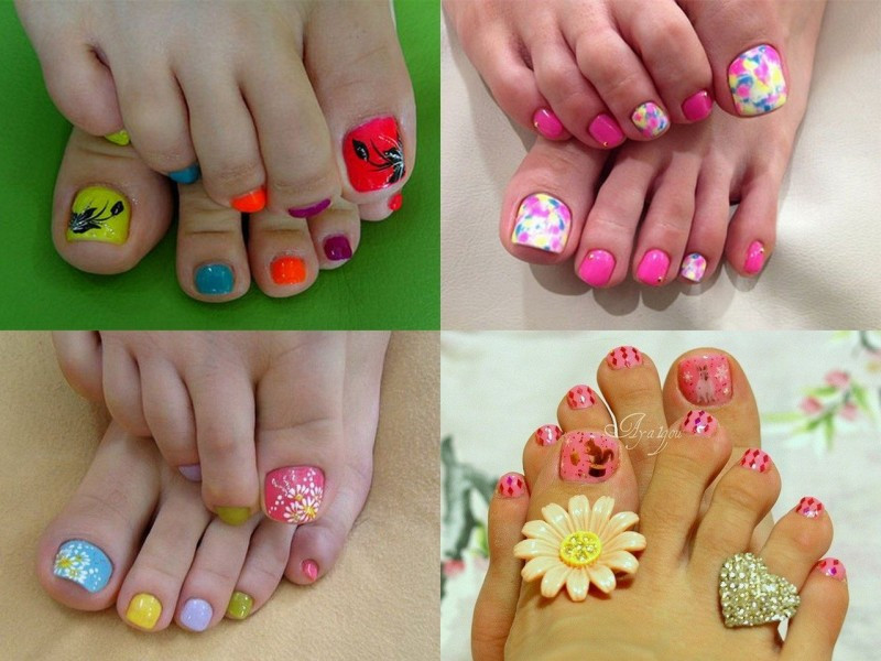 Разноцветные виды педикюра