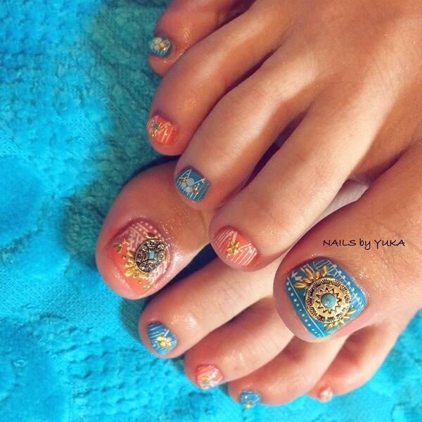 Этот вид дизайна держится на пике популярности уже более пяти лет. Рисунок Свит Блум напоминает винтажную роспись, барельефы, ожерелья из дорогих камней и восточную роспись. Он выигрышно и дорого будет смотреться на больших пальцах ног.