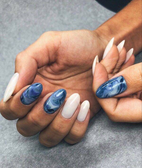 Создать на ногтях разводы можно с минимальными ресурсами. Главное — использовать контрастные оттенки, которые при смешении будут создавать невероятный результат.