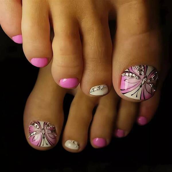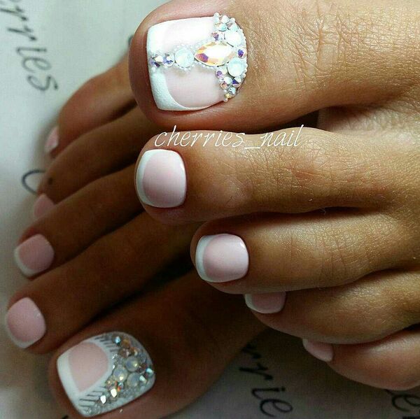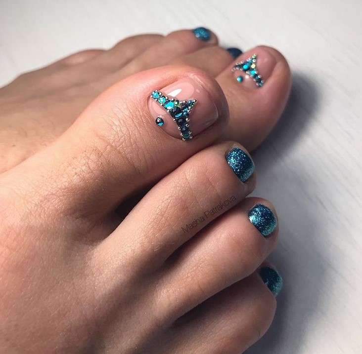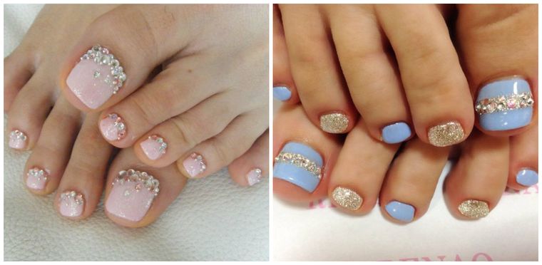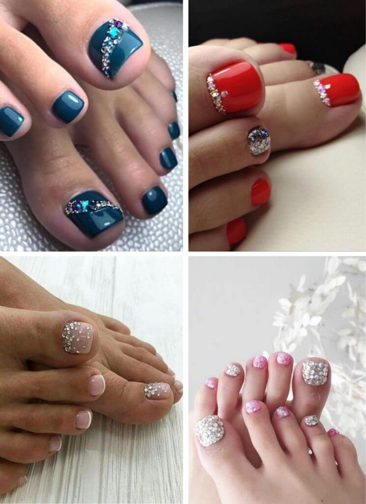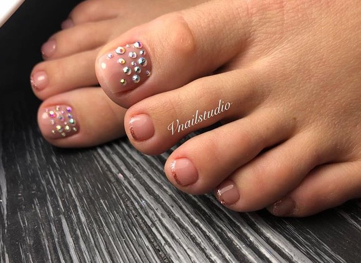 Варианты педикюра со стразами